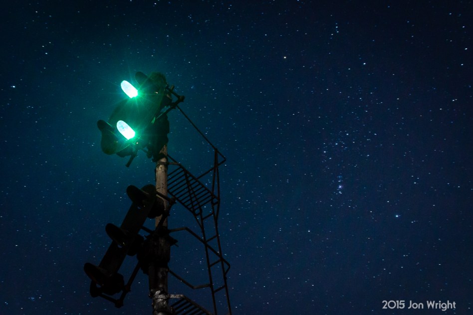 H16.8 The Norfolk and Western CPL at Shepherdstown, WV displays a clear indication for Norfolk Southern train 15T on the railroad’s H Line. The constellation “Orion” can be seen to the right.