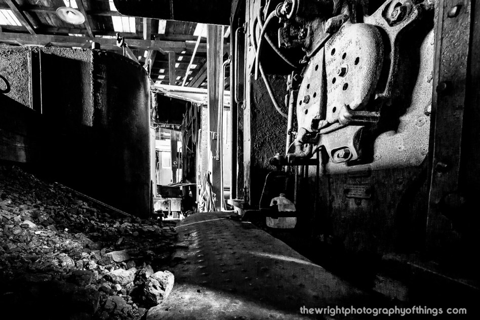 COLD FIRE – Coal sits on the floor of the cab of EBT 12 aka “Millie” awaiting its turn to burn inside the firebox during a recent Spring afternoon inside the railroad’s roundhouse.