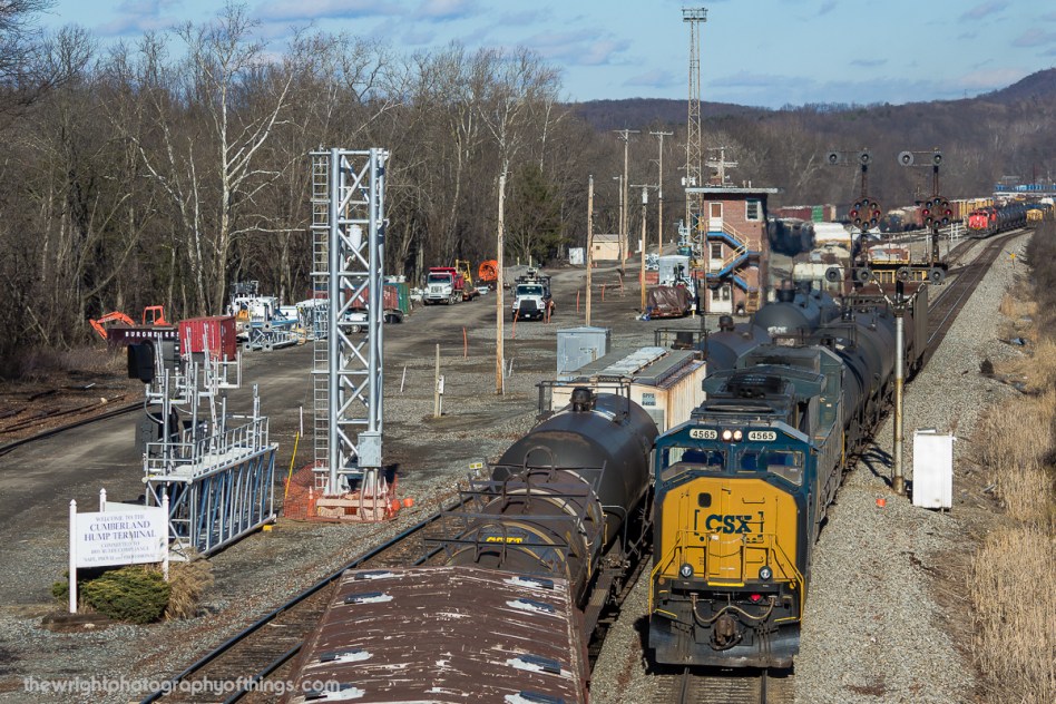 The B&O Sentinels time is running short as witness to the work being done on their replacements. L415 is making a cut to leave a shopped car in the yard. Q388 moves onto main one to make room and cut its train. In the distance, K676 and Q216 wait to depart the terminal.
