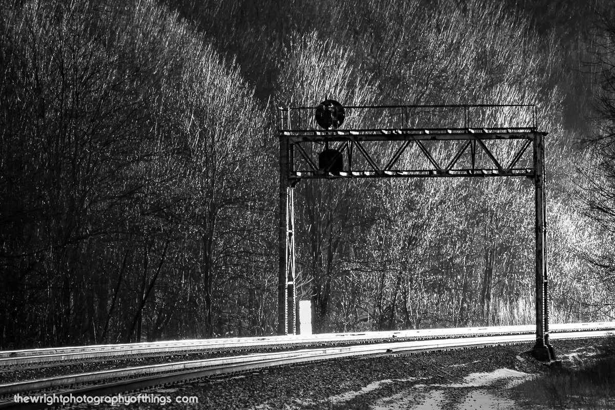 Published January 25, 2016 at 1200 × 800 in A helper set returning east to Altoona, PA brightens the night as it approaches this PRR signal bridge.