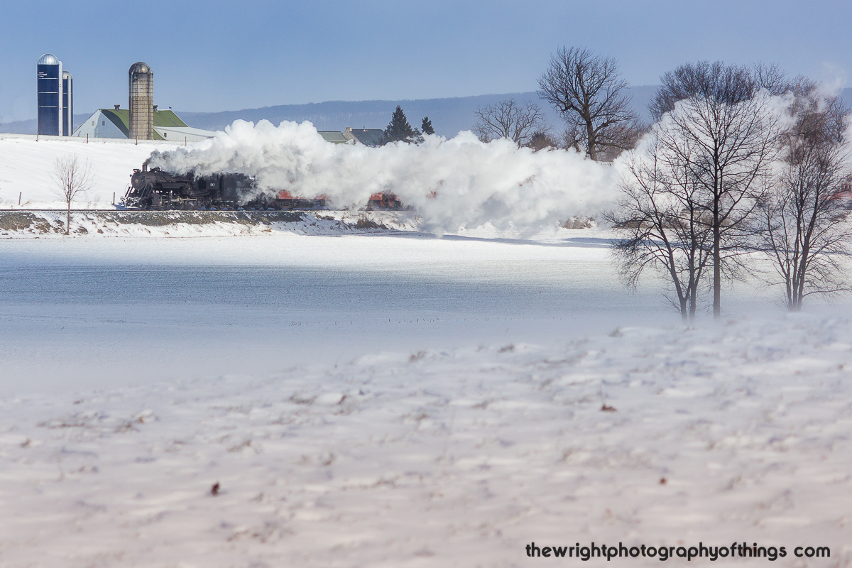 POCKETFUL OF SUNSHINE – SRR 90 leads the first run of the Long John Limited on the railroads Opening Day. The temperature hovered in the single digits and the wind chills at times were in the negative teens.