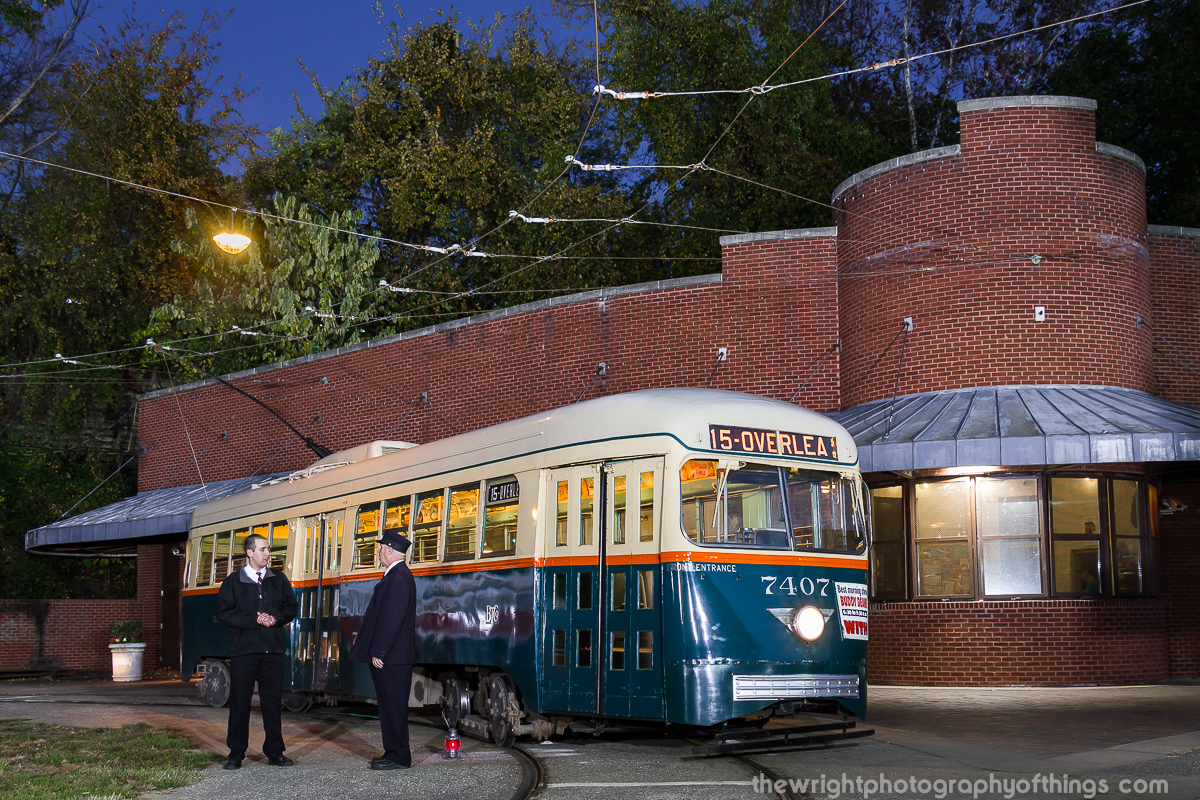 Baltimore Streetcar Museum’s youngest car, 7407 was built by the Pullman-Standard Car Manufacturing Company in 1944 for the Baltimore Transit Company. It was one of the last streetcars ordered for Baltimore until the MTA bought the new light rail cars. Since this car was built during the Second World War, the stanchions are painted instead of chrome coated. This car represented the height of streetcar development in the world when it was built and has the same general performance characteristics as the modern light rail cars. This car was rebuilt in the early 1990’s and is painted in its original color scheme of cream, Alexandria blue, and orange. The original paint scheme of Baltimore’s PCC cars was the result of a student competition circa 1936 at the Baltimore Institute of Art.