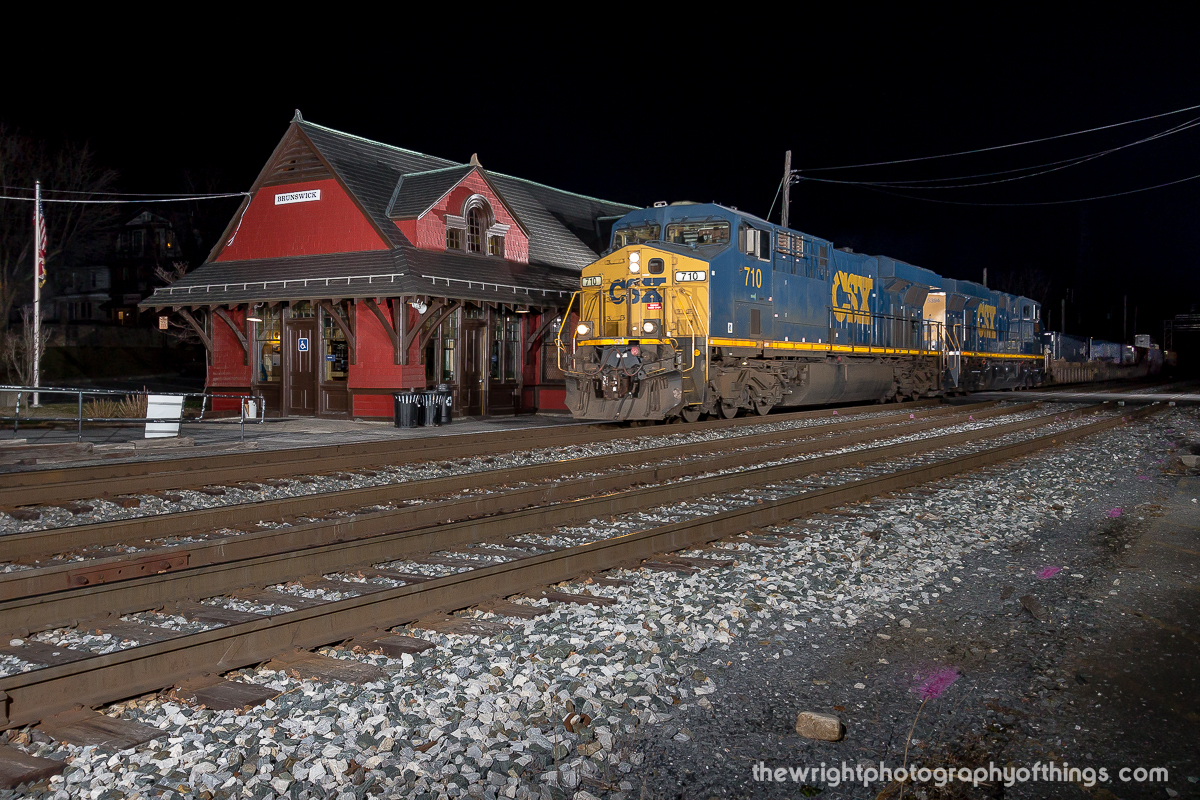 CSX train Q137 passes by the Baltimore and Ohio Railroad 1891 station in Brunswick, MD designed by famed architect E. Francis Baldwin.