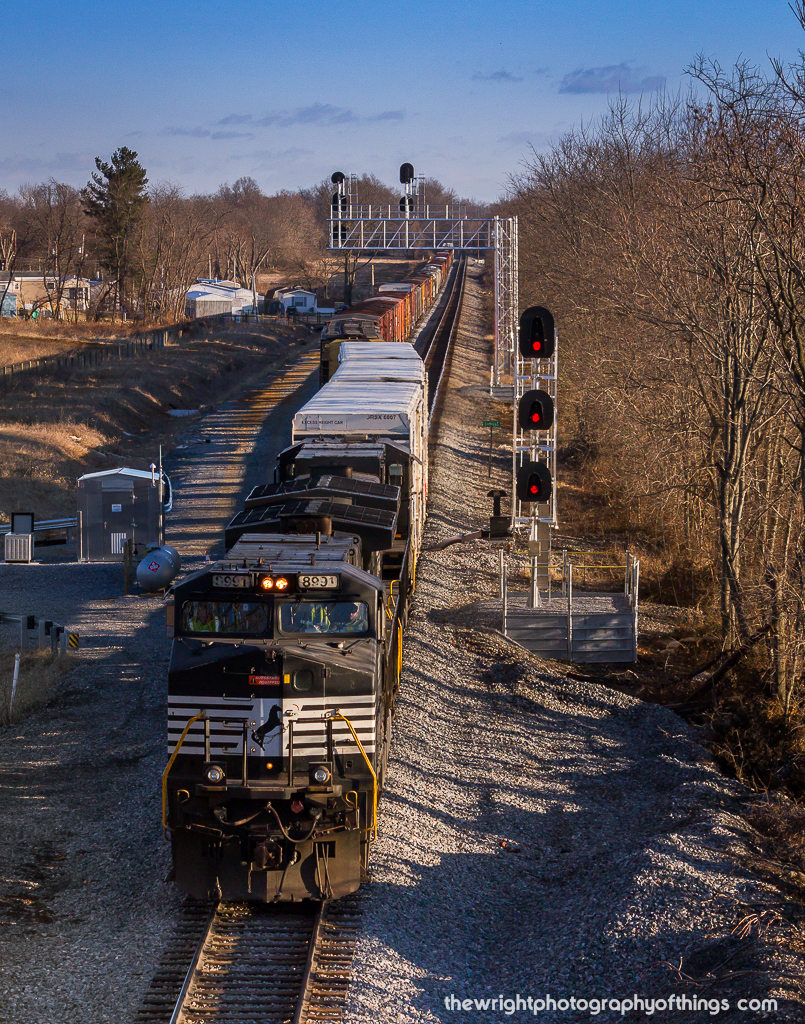 H25.4 35Q pulls out of the new extending siding as seen from the WV Highway 9 overpass in February 2015