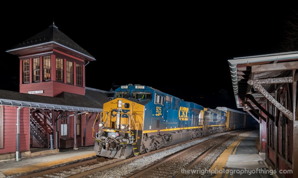 HARPERS FERRY: CSX Q276 passes through Harpers Ferry, WV and by the 1894 Baltimore and Ohio Railroad station designed by E. Francis Baldwin ON January 27, 2018. The building itself is owned by the National Park Service who restored it to it’s classic appearance in 2006. More recently, the passenger waiting shack on the right was rebuilt by the NPS in association with CSX within the past couple of years as it was slowly degrading and in danger of collapse.