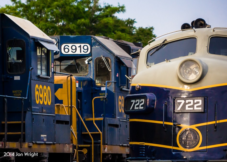 GOT HERITAGE?: Sitting in the yard before being sent west to Cumberland on the nights D720 is the B&O F7 coming back from the event over the weekend in Spencer, NC. Although not a true B&O Heritage engine, the former BLE locomotive was painted into the Baltimore & Ohio livery in 2010 to honor the South Branch Valley’s 100th anniversary. Also pictured are two EMD GP40-2’s both of C&O heritage.